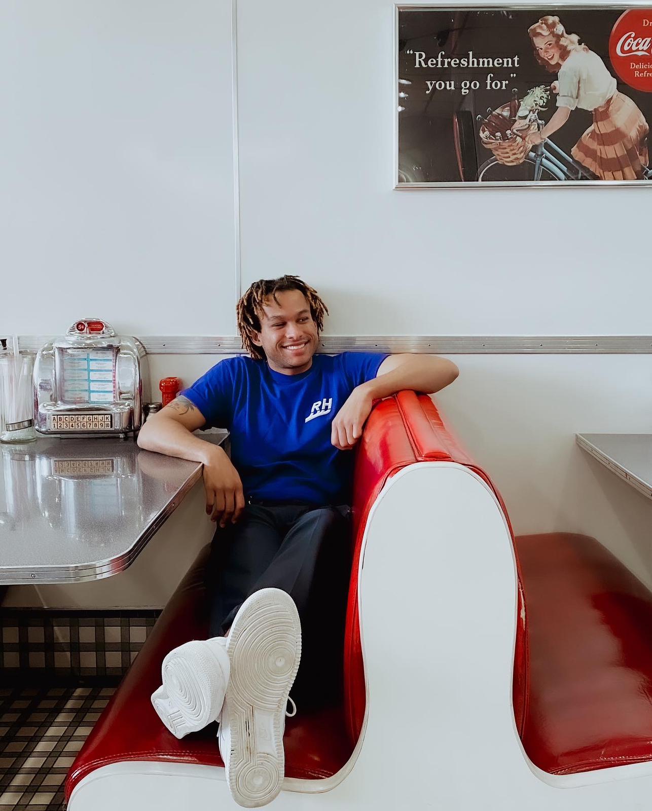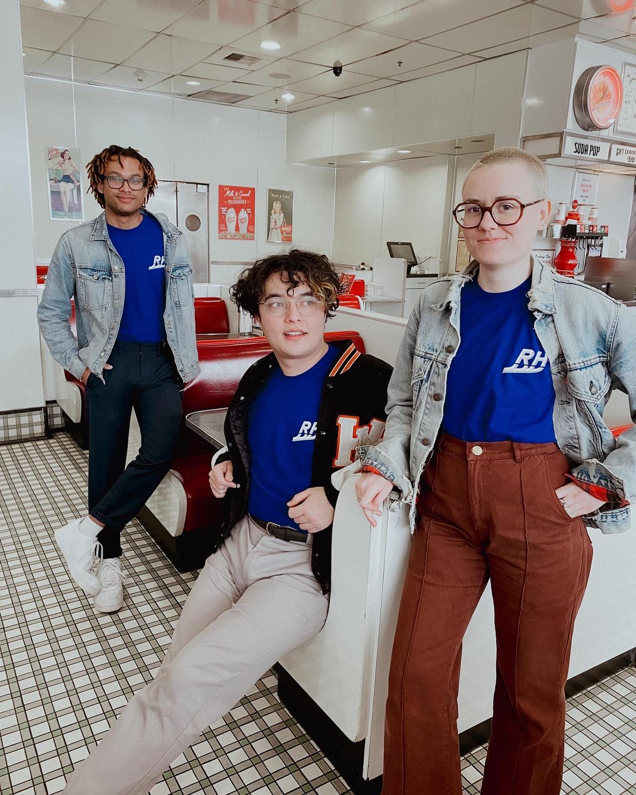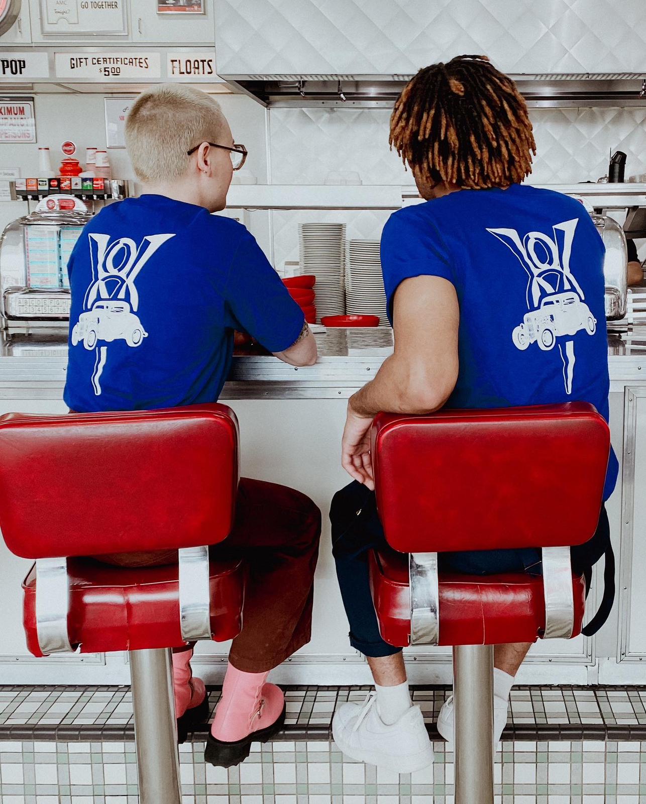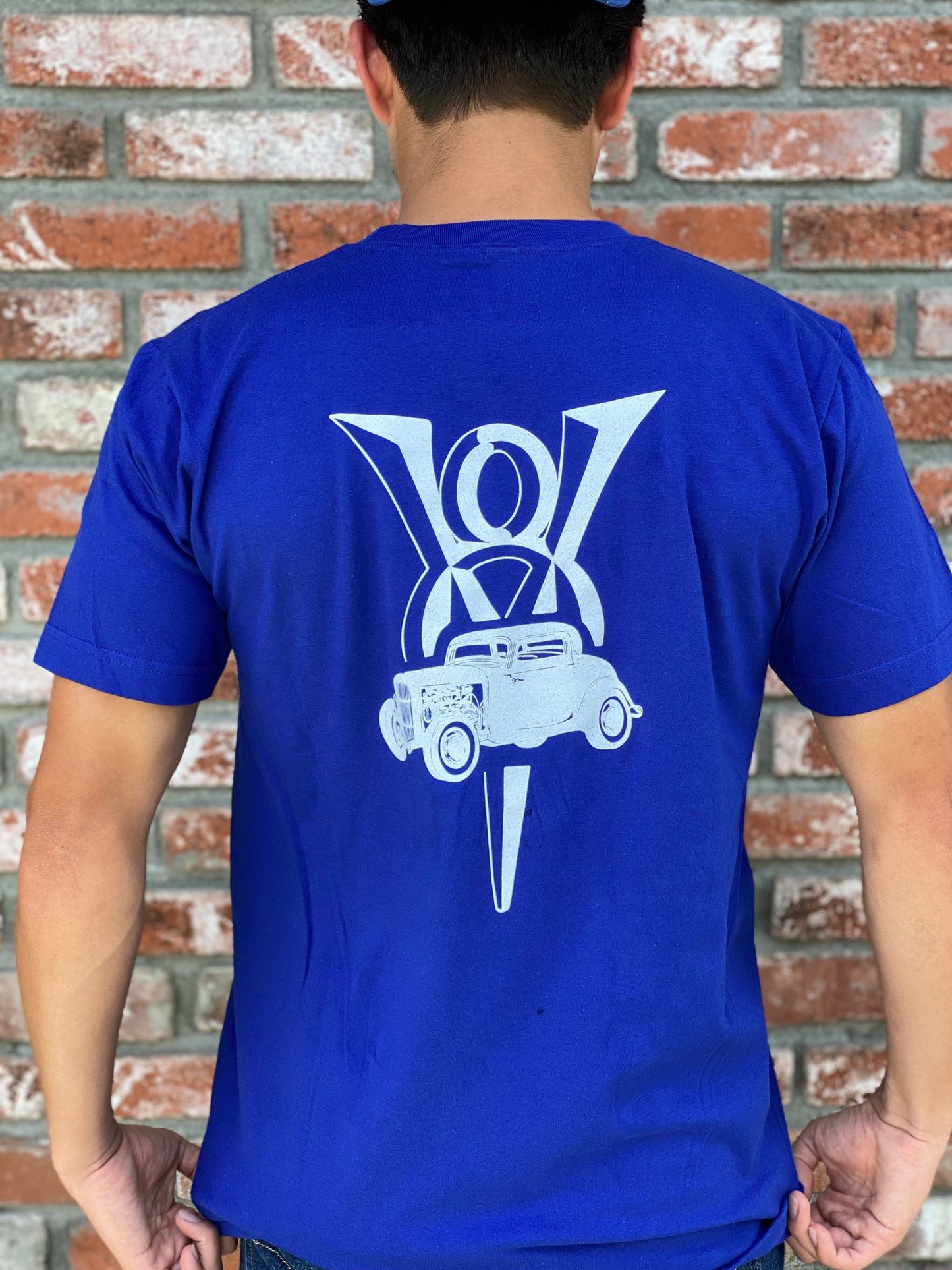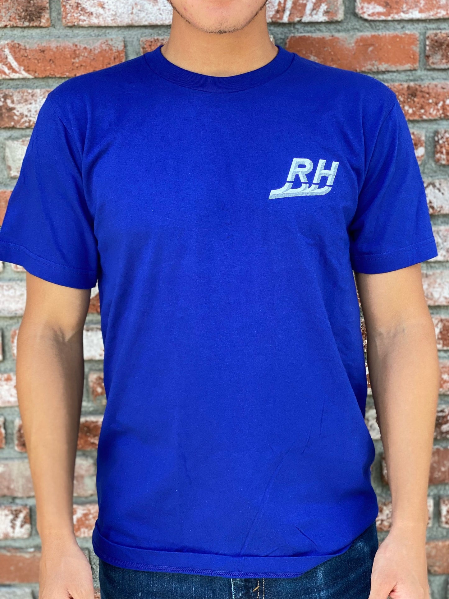 Red's Headers custom T-Shirt with new logo on the frontVintage logo on blue, Discharge printed on 100% CottonStandard fitAmerican Apparel Fine Jersey